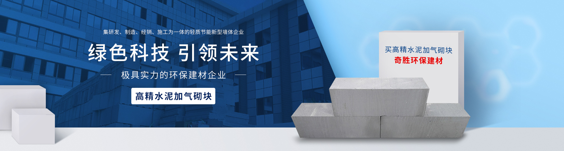 福建奇勝環(huán)保建材科技有限公司隨著可開發(fā)利用的土地資源日趨減少及節(jié)能降耗意識(shí)的增強(qiáng),實(shí)心粘土磚逐漸在全國(guó)各地被禁止使用,非粘土類新型輕質(zhì)墻體材料成了較為理想的替代產(chǎn)品。為適應(yīng)建筑市場(chǎng)的需求,福建奇勝環(huán)保建材科技有限公司研發(fā)生產(chǎn)了巖安牌系列產(chǎn)品:巖安牌新新型高精水泥加氣砌塊(凹凸型)、巖安牌益膠泥等。